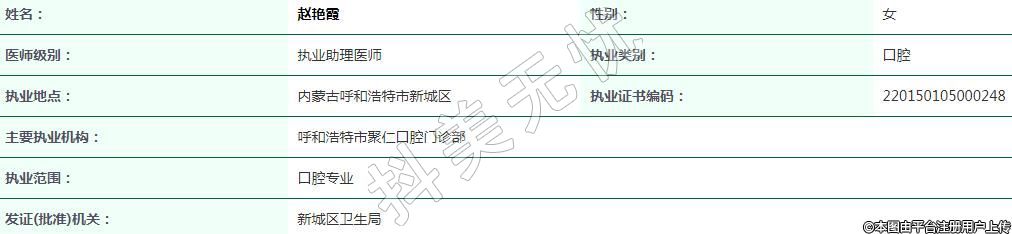 主要執(zhí)業(yè)機構(gòu):呼和浩特市聚仁口腔門診部