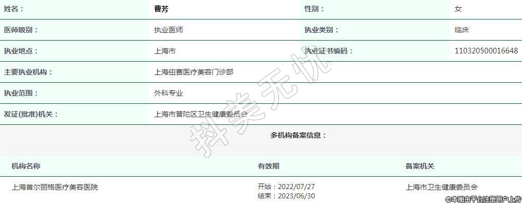 主要執(zhí)業(yè)機(jī)構(gòu):上海紐賽醫(yī)療美容門診部