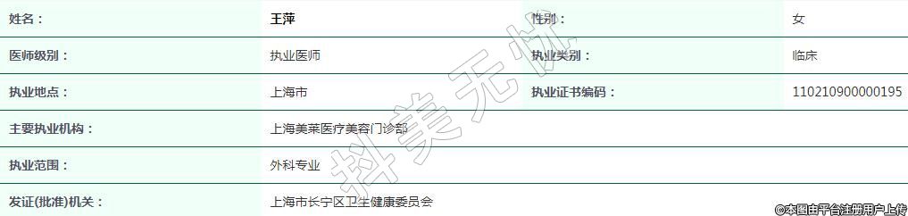 上海美萊醫(yī)療美容執(zhí)業(yè)醫(yī)師