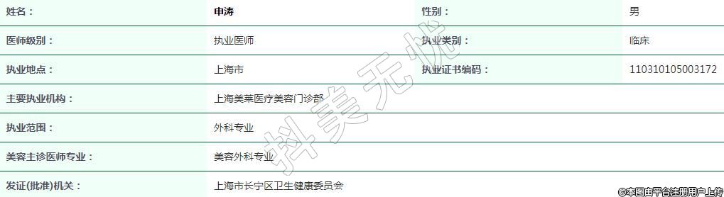 上海美萊醫(yī)療美容執(zhí)業(yè)醫(yī)師