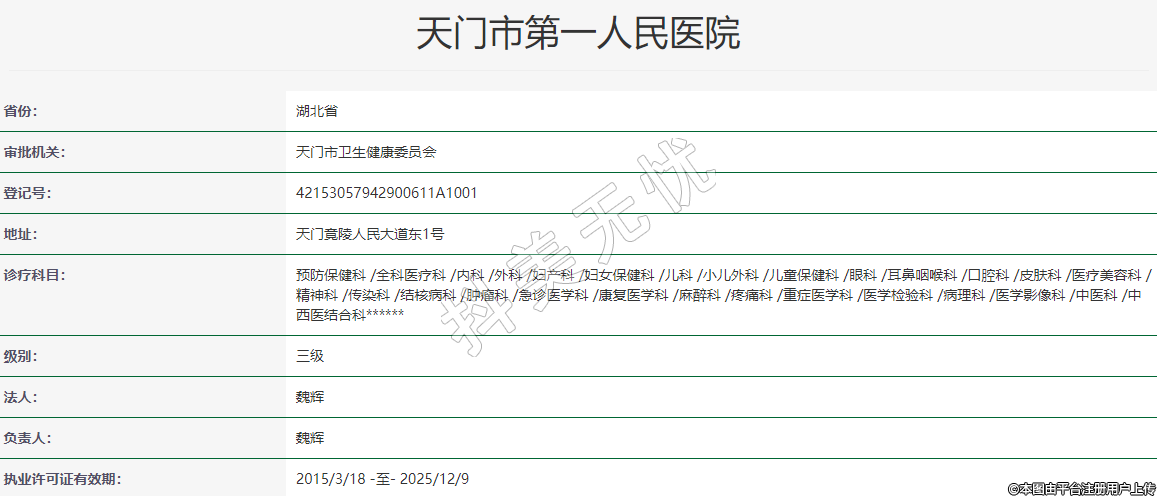 發(fā)證(批準(zhǔn))機關(guān):天門市衛(wèi)生健康委員會