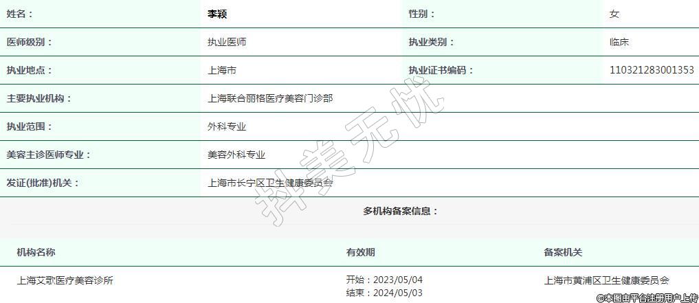 上海艾歌醫(yī)療美容執(zhí)業(yè)醫(yī)師 -