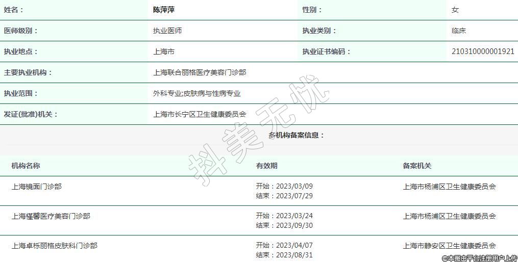 上海鏡面醫(yī)療美容執(zhí)業(yè)醫(yī)師