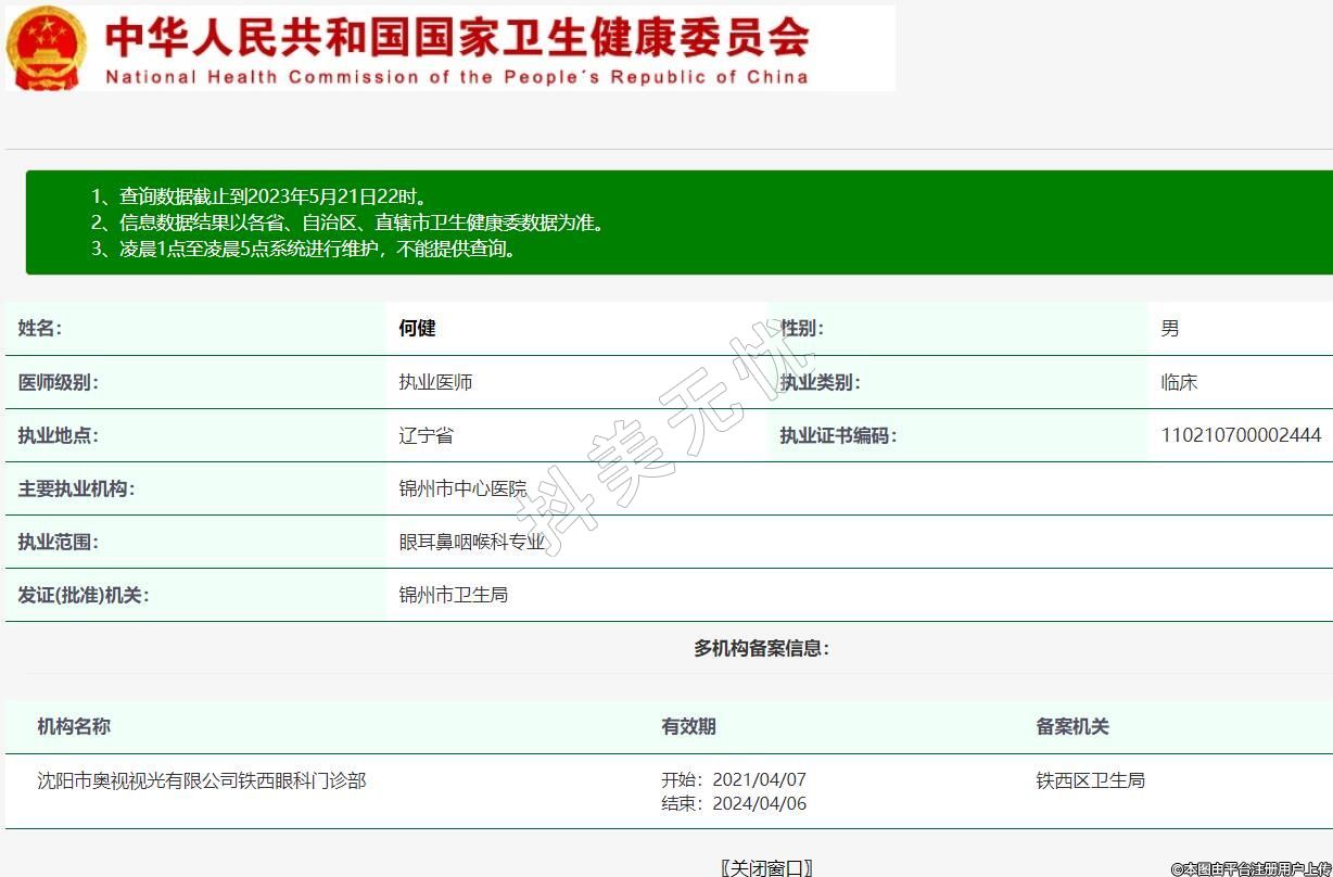 執(zhí)業(yè)范圍:眼耳鼻咽喉科專業(yè)