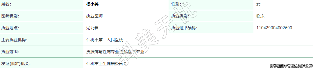 執(zhí)業(yè)范圍:皮膚病與性病專業(yè);全科醫(yī)學(xué)專業(yè)