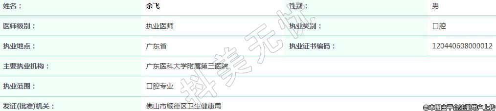 執(zhí)業(yè)范圍:口腔專業(yè)