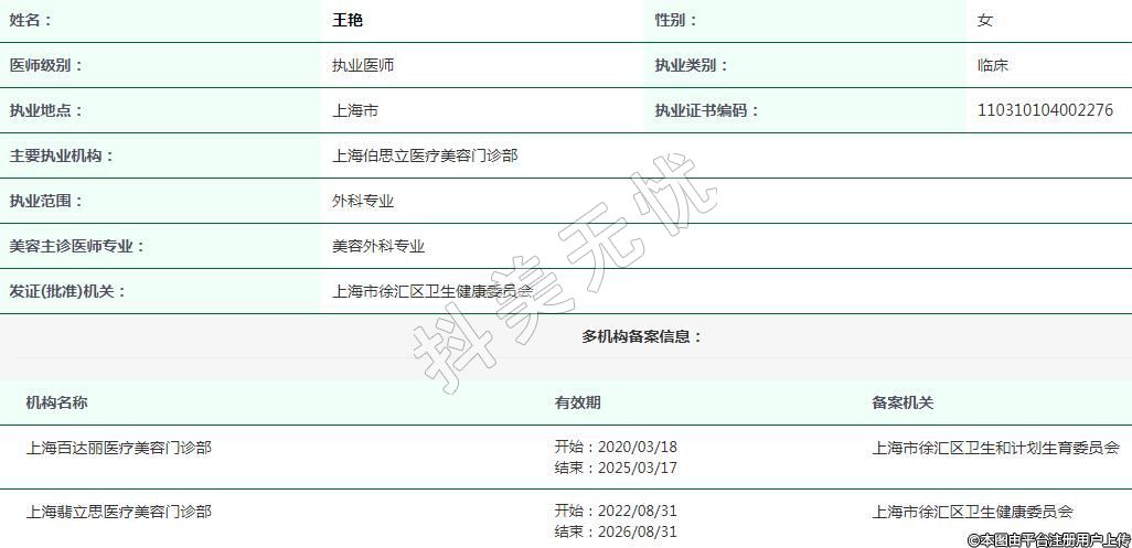 上海百達(dá)麗醫(yī)療美容執(zhí)業(yè)醫(yī)師