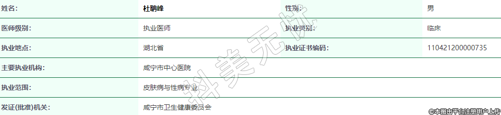 執(zhí)業(yè)范圍:皮膚病與性病專(zhuān)業(yè)