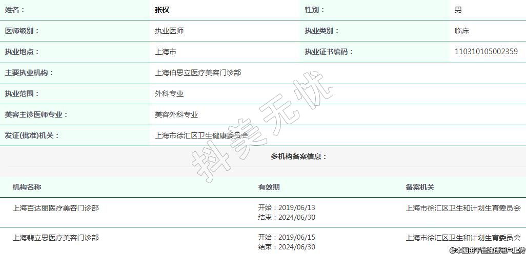 上海百達(dá)麗醫(yī)療美容執(zhí)業(yè)醫(yī)師