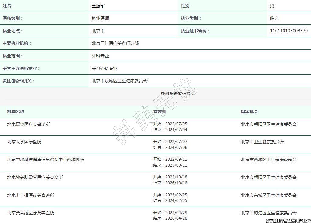 主要執(zhí)業(yè)機(jī)構(gòu):北京三仁醫(yī)療美容門診部