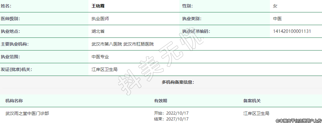 主要執(zhí)業(yè)機(jī)構(gòu):武漢市第八醫(yī)院 武漢市肛腸醫(yī)院