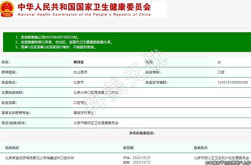 發(fā)證(批準)機關:北京市朝陽區(qū)衛(wèi)生健康委員會