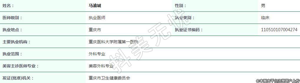 重慶醫(yī)科大學附屬第一醫(yī)院醫(yī)療美容執(zhí)業(yè)醫(yī)師