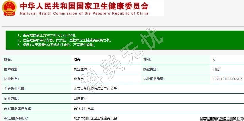發(fā)證(批準)機關:北京市朝陽區(qū)衛(wèi)生健康委員會