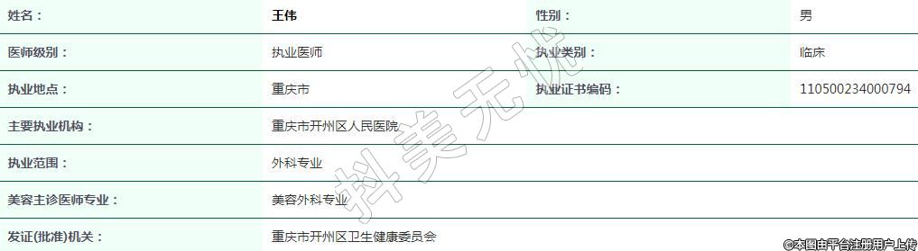 重慶市開州區(qū)人民醫(yī)院醫(yī)療美容執(zhí)業(yè)醫(yī)師
