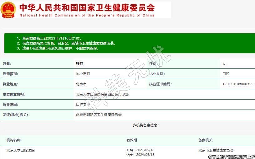 主要執(zhí)業(yè)機(jī)構(gòu):北京大學(xué)口腔醫(yī)院第四口腔門診部