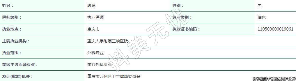 重慶大學附屬三峽醫(yī)院醫(yī)療美容執(zhí)業(yè)醫(yī)師