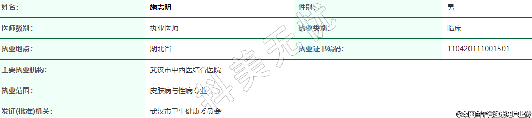 執(zhí)業(yè)范圍:皮膚病與性病專業(yè)