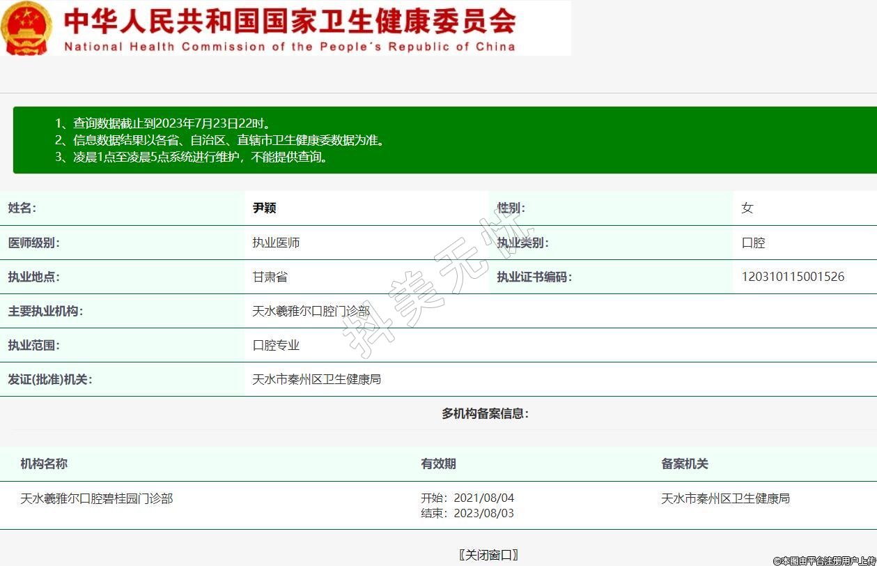 主要執(zhí)業(yè)機(jī)構(gòu):天水羲雅爾口腔門診部