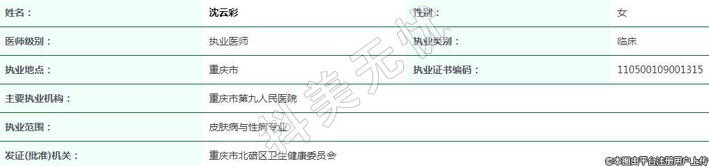 重慶市第九人民醫(yī)院皮膚美容科執(zhí)業(yè)醫(yī)師