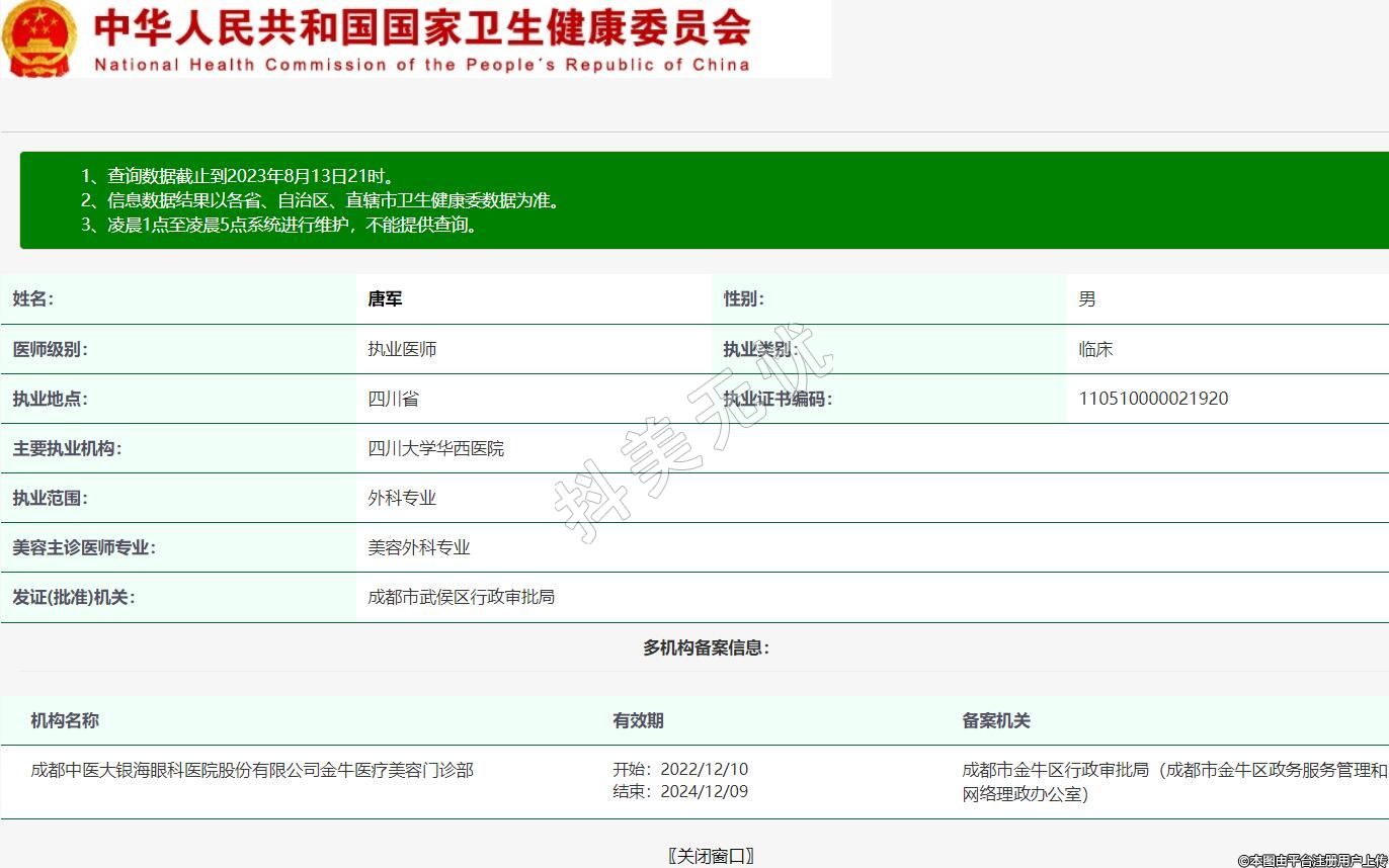 機(jī)構(gòu)名稱:成都中醫(yī)大銀海眼科醫(yī)院股份有限公司金牛醫(yī)療美容門(mén)診部
