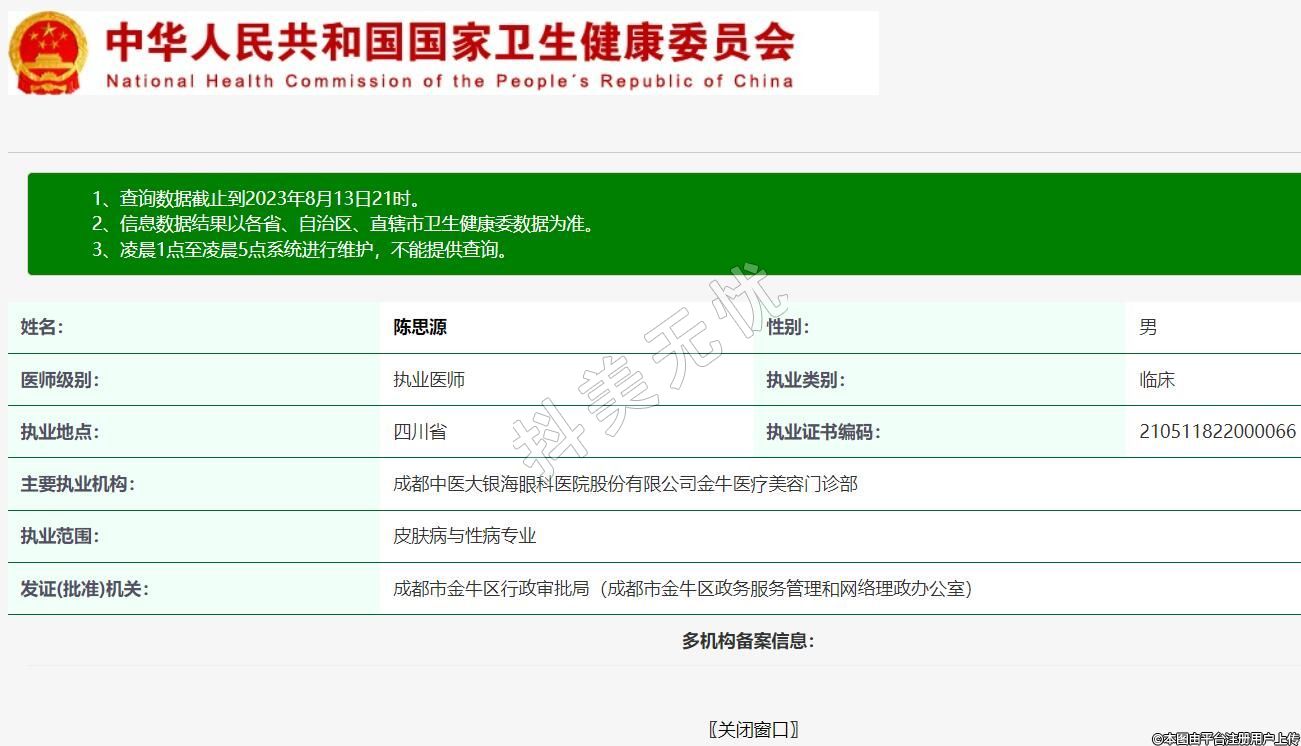 主要執(zhí)業(yè)機構:成都中醫(yī)大銀海眼科醫(yī)院股份有限公司金牛醫(yī)療美容門診部