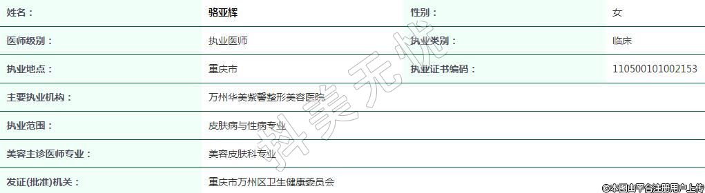 萬(wàn)州華美紫馨整形美容執(zhí)業(yè)醫(yī)師