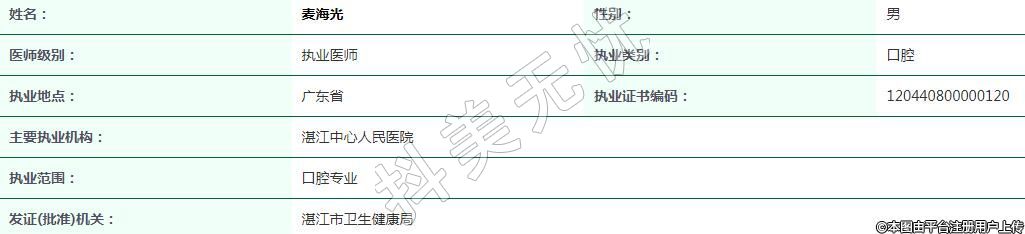 執(zhí)業(yè)范圍:口腔專業(yè)