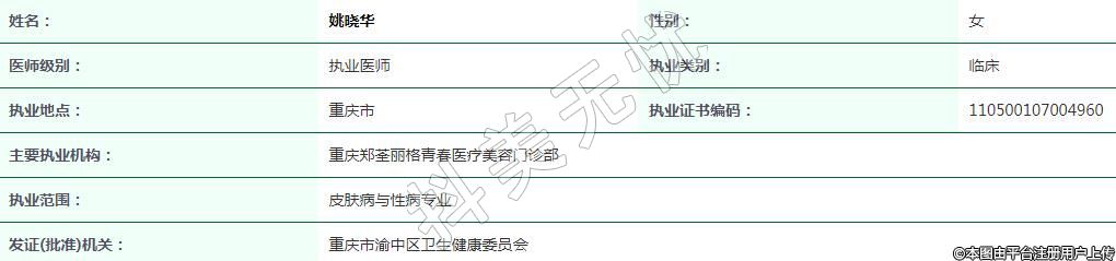 主要執(zhí)業(yè)機(jī)構(gòu):重慶鄭荃麗格青春醫(yī)療美容門診部