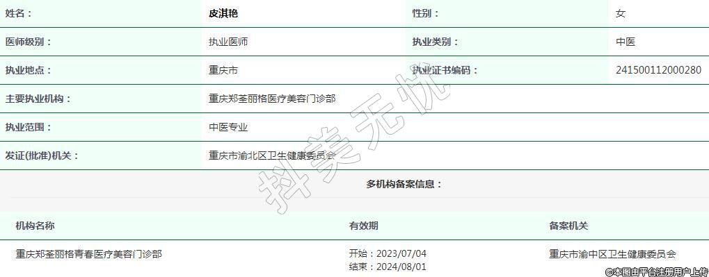 重慶鄭荃麗格醫(yī)療美容執(zhí)業(yè)醫(yī)師
