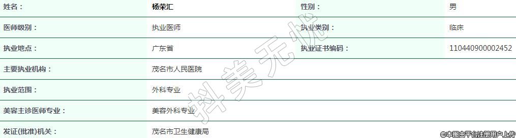 茂名市人民醫(yī)院整形執(zhí)業(yè)醫(yī)生