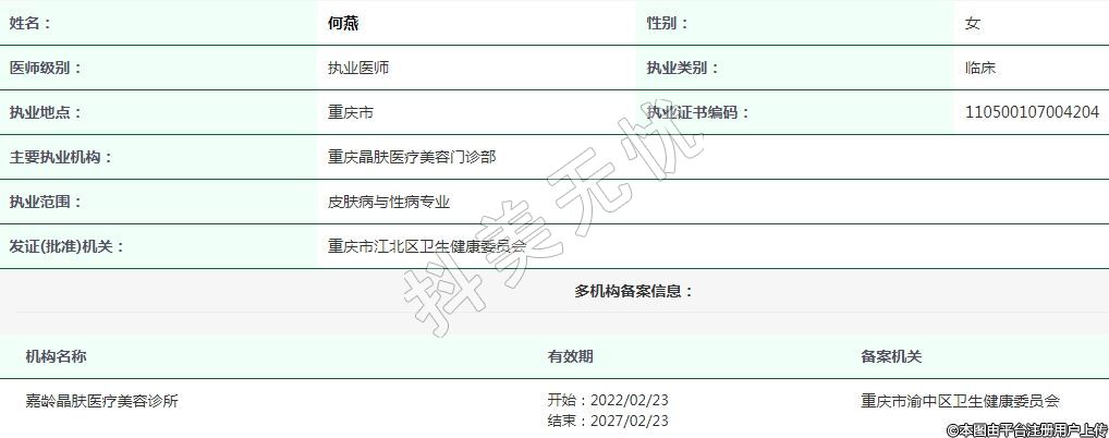 重慶晶膚醫(yī)療美容執(zhí)業(yè)醫(yī)師