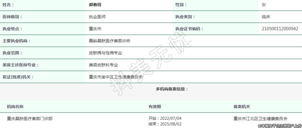 重慶晶膚醫(yī)療美容執(zhí)業(yè)醫(yī)師 -