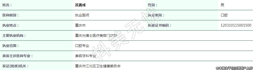 重慶光博士醫(yī)療美容執(zhí)業(yè)醫(yī)師