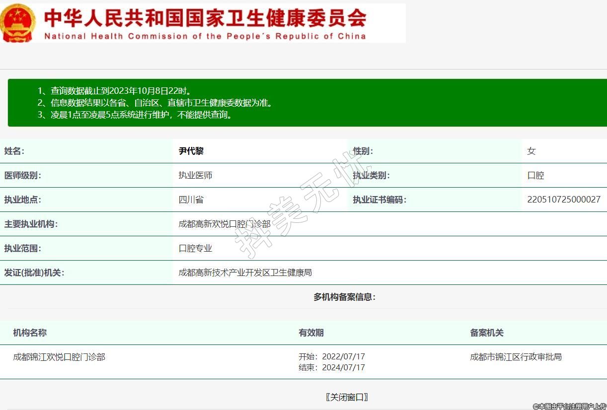 主要執(zhí)業(yè)機(jī)構(gòu):成都高新歡悅口腔門診部