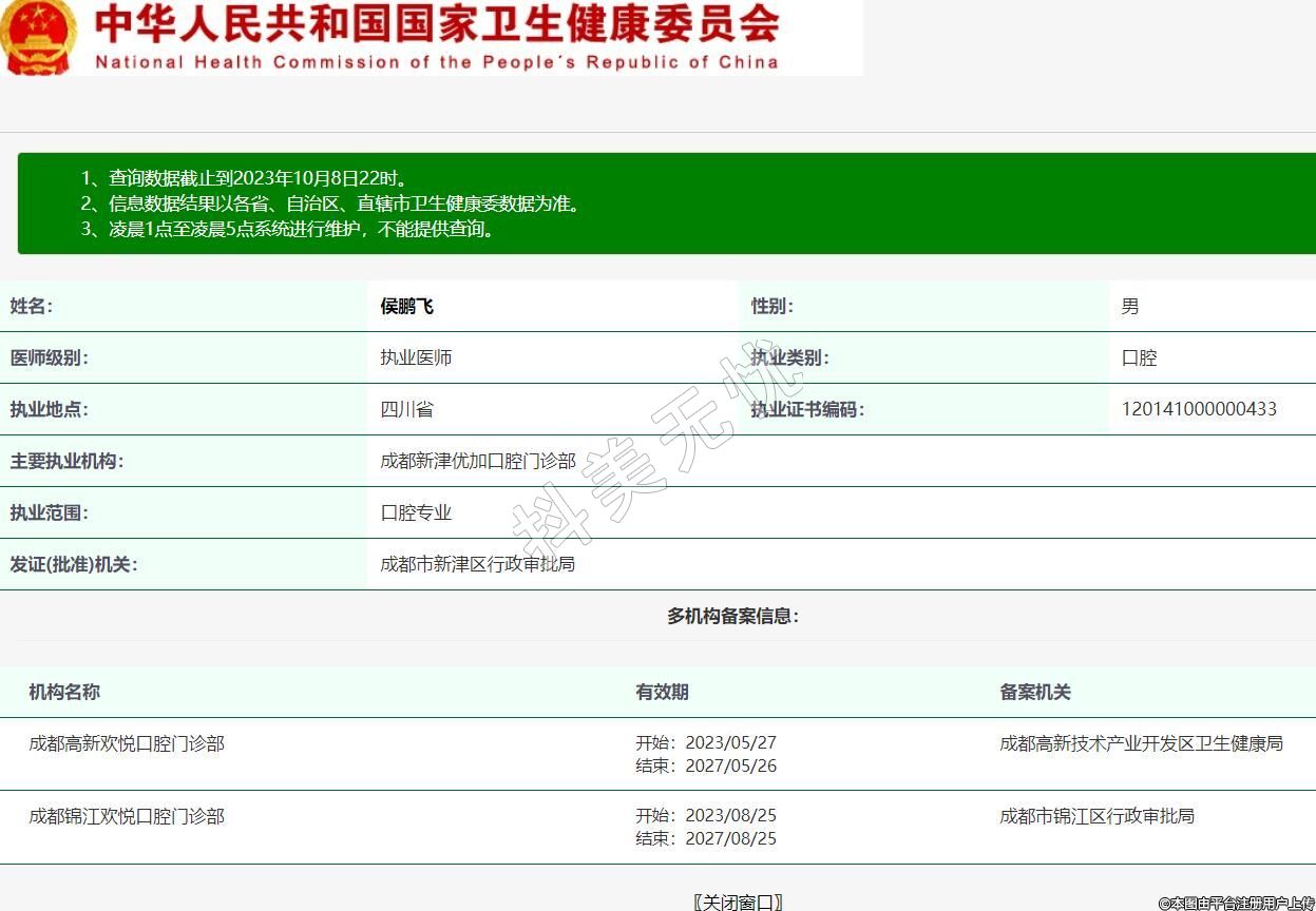 主要執(zhí)業(yè)機(jī)構(gòu):成都新津優(yōu)加口腔門診部