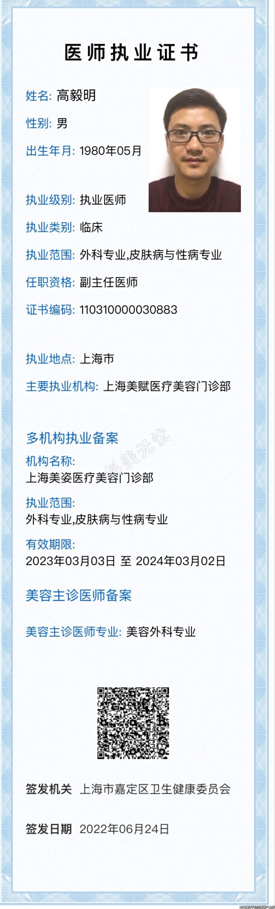 主要執(zhí)業(yè)機構:上海美賦醫(yī)療美容門診部