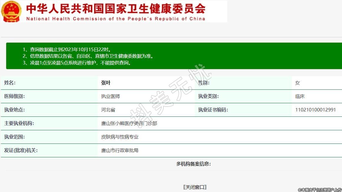 主要執(zhí)業(yè)機(jī)構(gòu):唐山張小熊醫(yī)療美容門診部