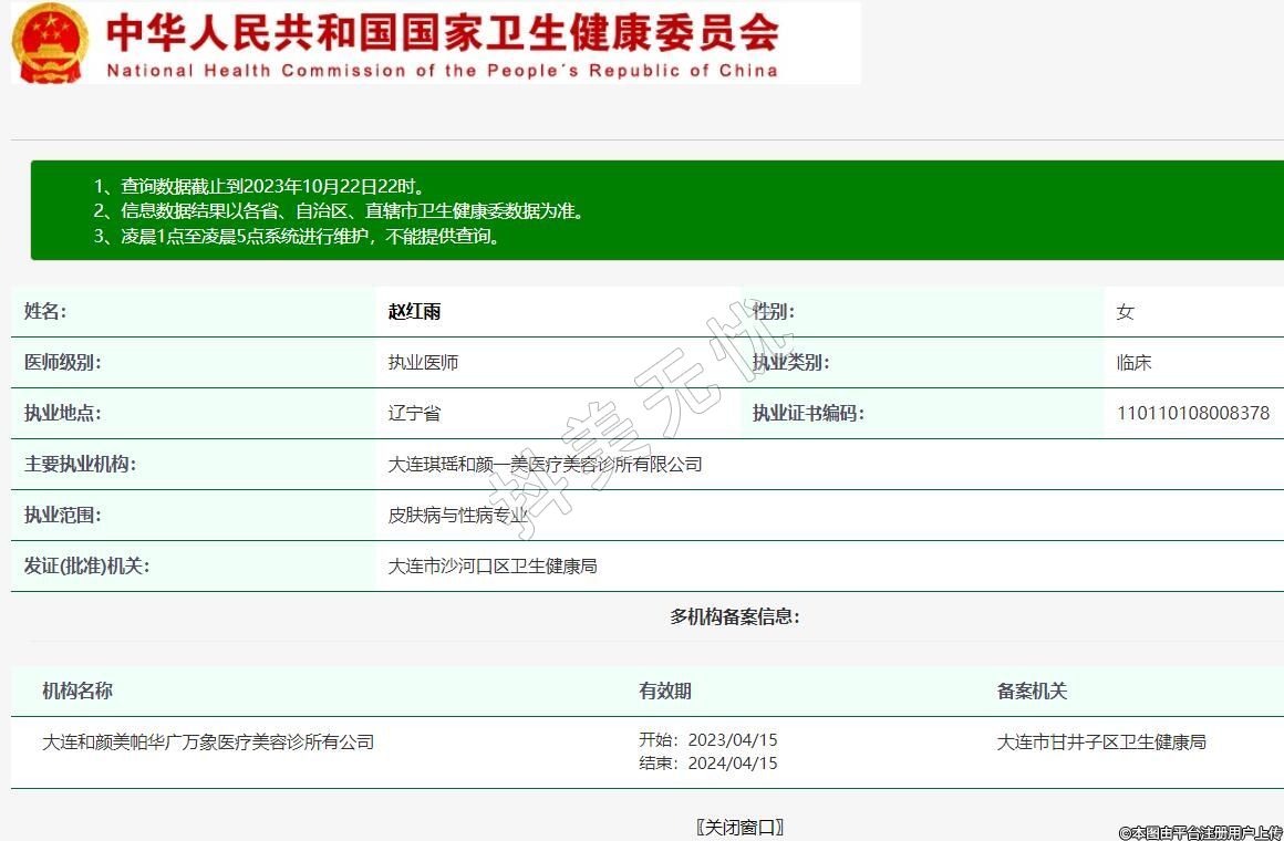 主要執(zhí)業(yè)機(jī)構(gòu):大連琪瑤和顏一美醫(yī)療美容診所有限公司