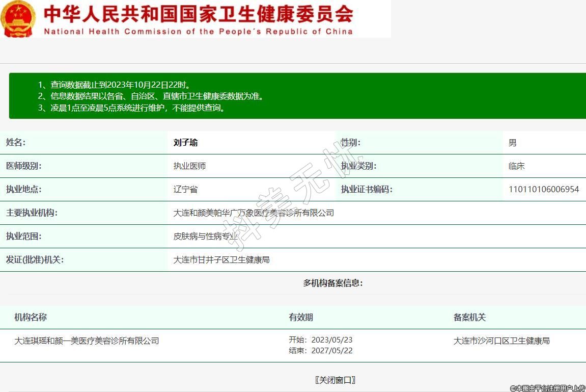 機(jī)構(gòu)名稱:大連琪瑤和顏一美醫(yī)療美容診所有限公司