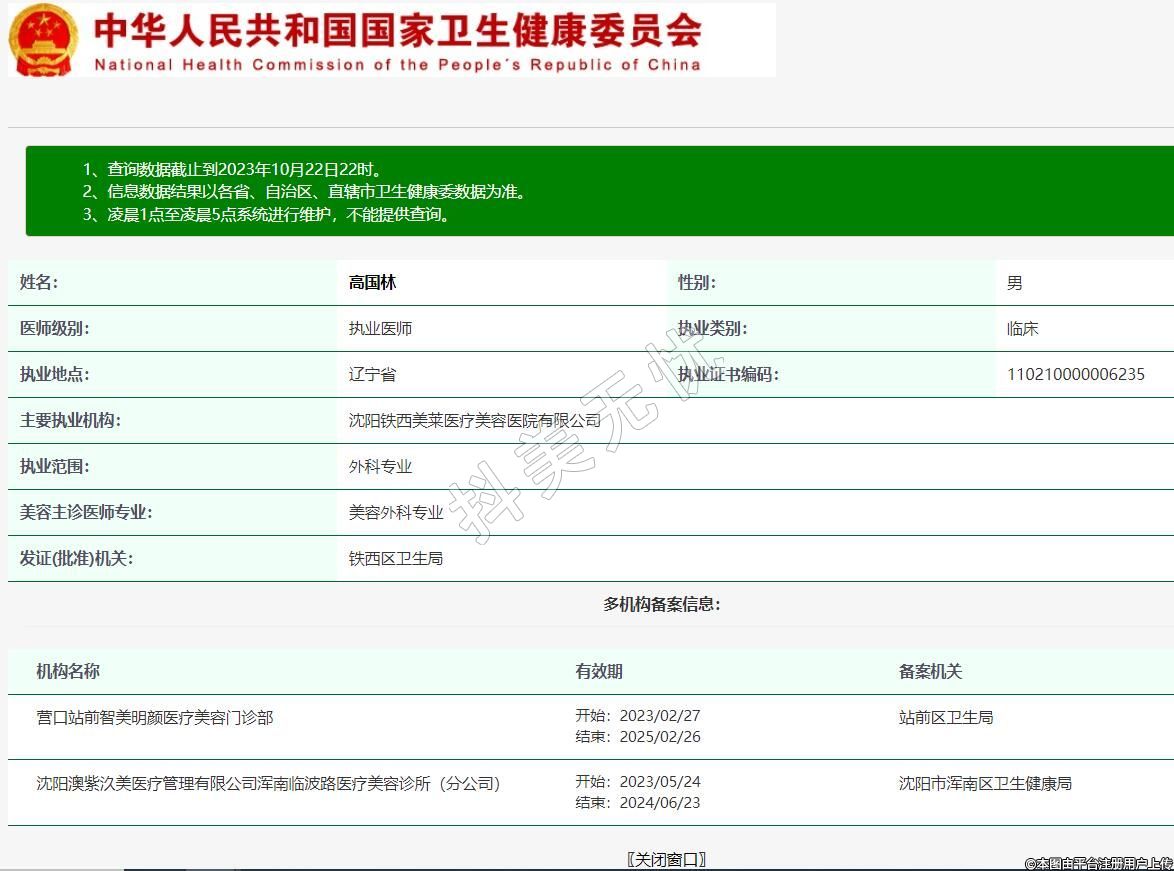 主要執(zhí)業(yè)機(jī)構(gòu):沈陽鐵西美萊醫(yī)療美容醫(yī)院有限公司