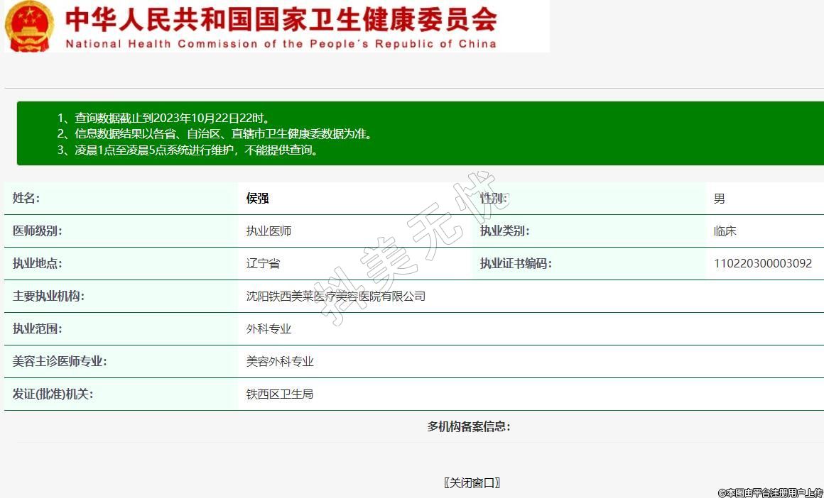 主要執(zhí)業(yè)機(jī)構(gòu):沈陽鐵西美萊醫(yī)療美容醫(yī)院有限公司