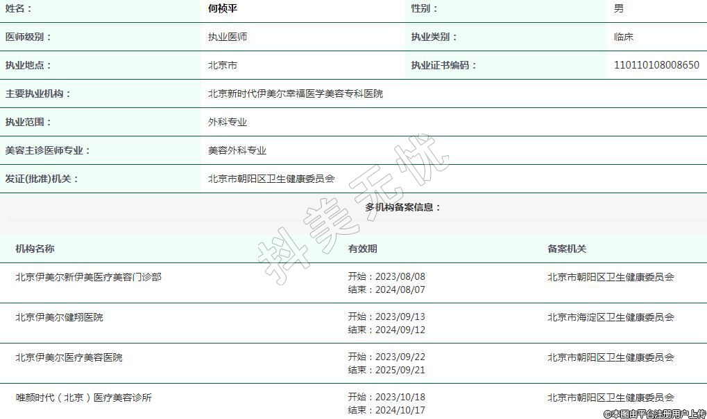 北京伊美爾醫(yī)療美容執(zhí)業(yè)醫(yī)生