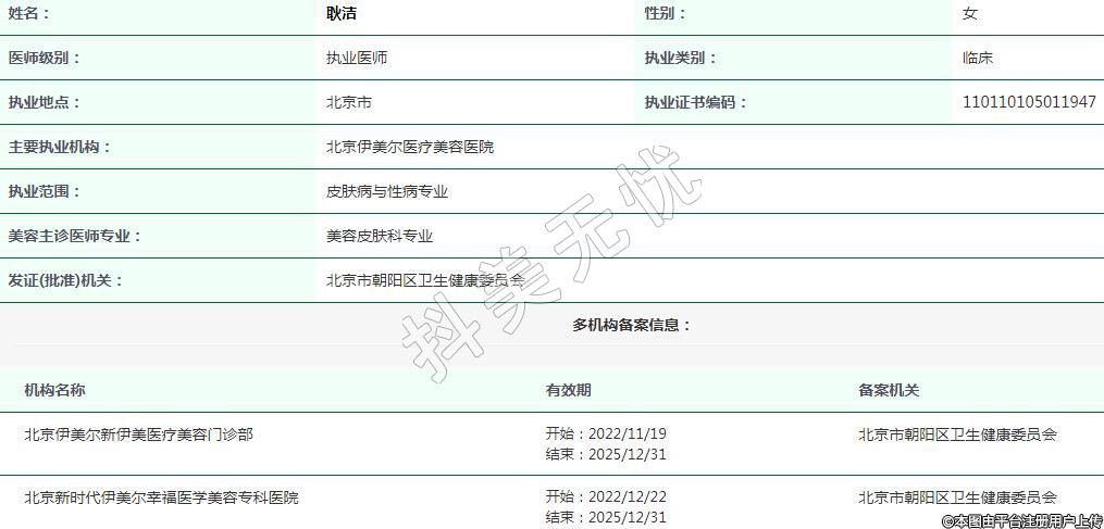 北京伊美爾醫(yī)療美容執(zhí)業(yè)醫(yī)生