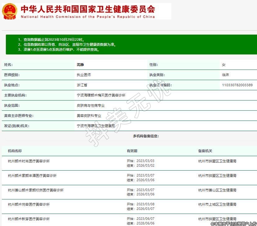 主要執(zhí)業(yè)機(jī)構(gòu):寧波海曙顏術(shù)梅天醫(yī)療美容診所