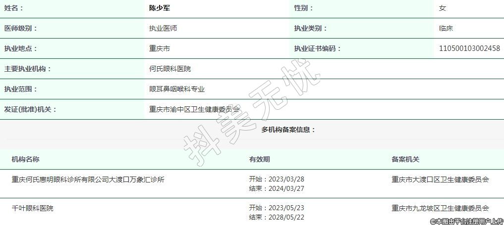 重慶何氏眼科執(zhí)業(yè)醫(yī)師
