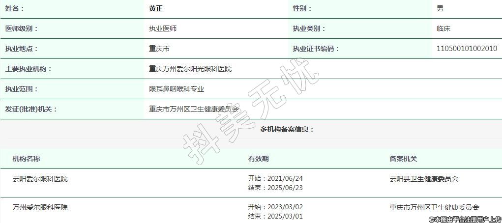 重慶萬州愛爾陽光眼科執(zhí)業(yè)醫(yī)師