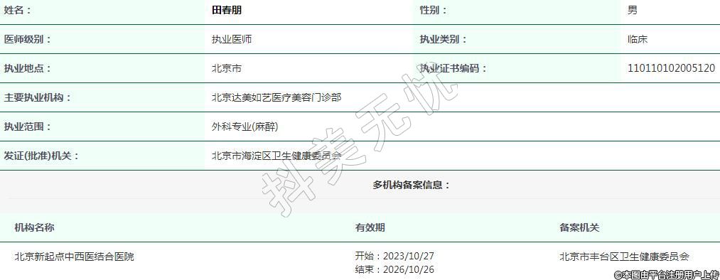 北京達(dá)美如藝醫(yī)療美容執(zhí)業(yè)醫(yī)生