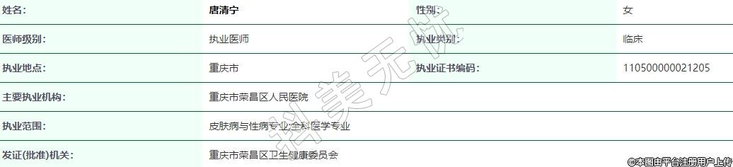 執(zhí)業(yè)范圍:皮膚病與性病專業(yè);全科醫(yī)學(xué)專業(yè)