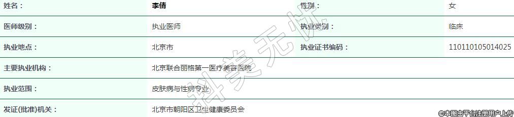北京聯(lián)合麗格第一醫(yī)療美容執(zhí)業(yè)醫(yī)生